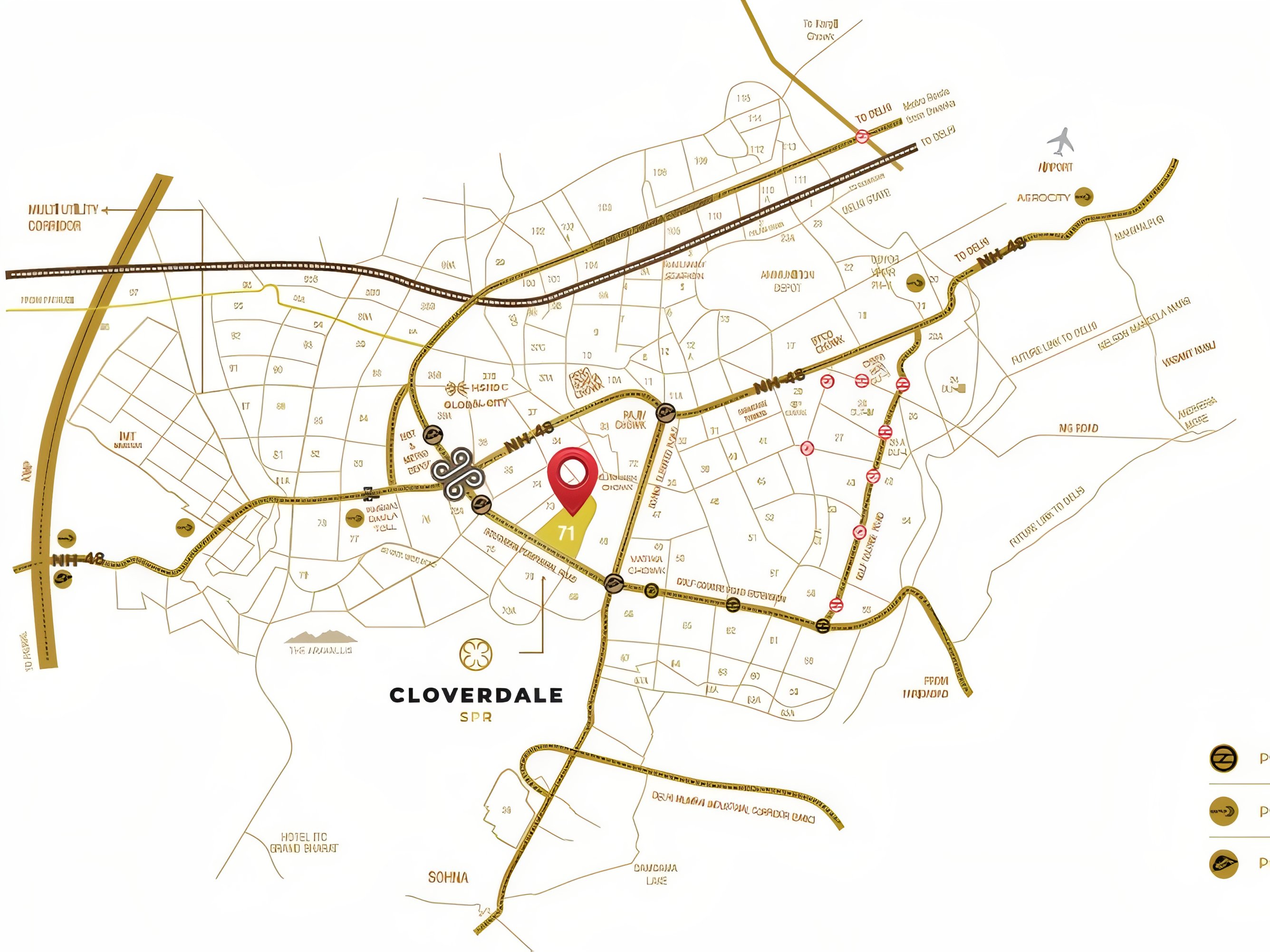 Signature Global Cloverdale SPR is a premium high-rise luxury residential development located directly on Southern Peripheral Road (SPR), Gurugram—one of the city’s most prestigious and high-growth corridors. Crafted for HNIs, CXOs, and NRI investors, the project offers expansive 3 & 4 BHK residences designed for elevated urban living.