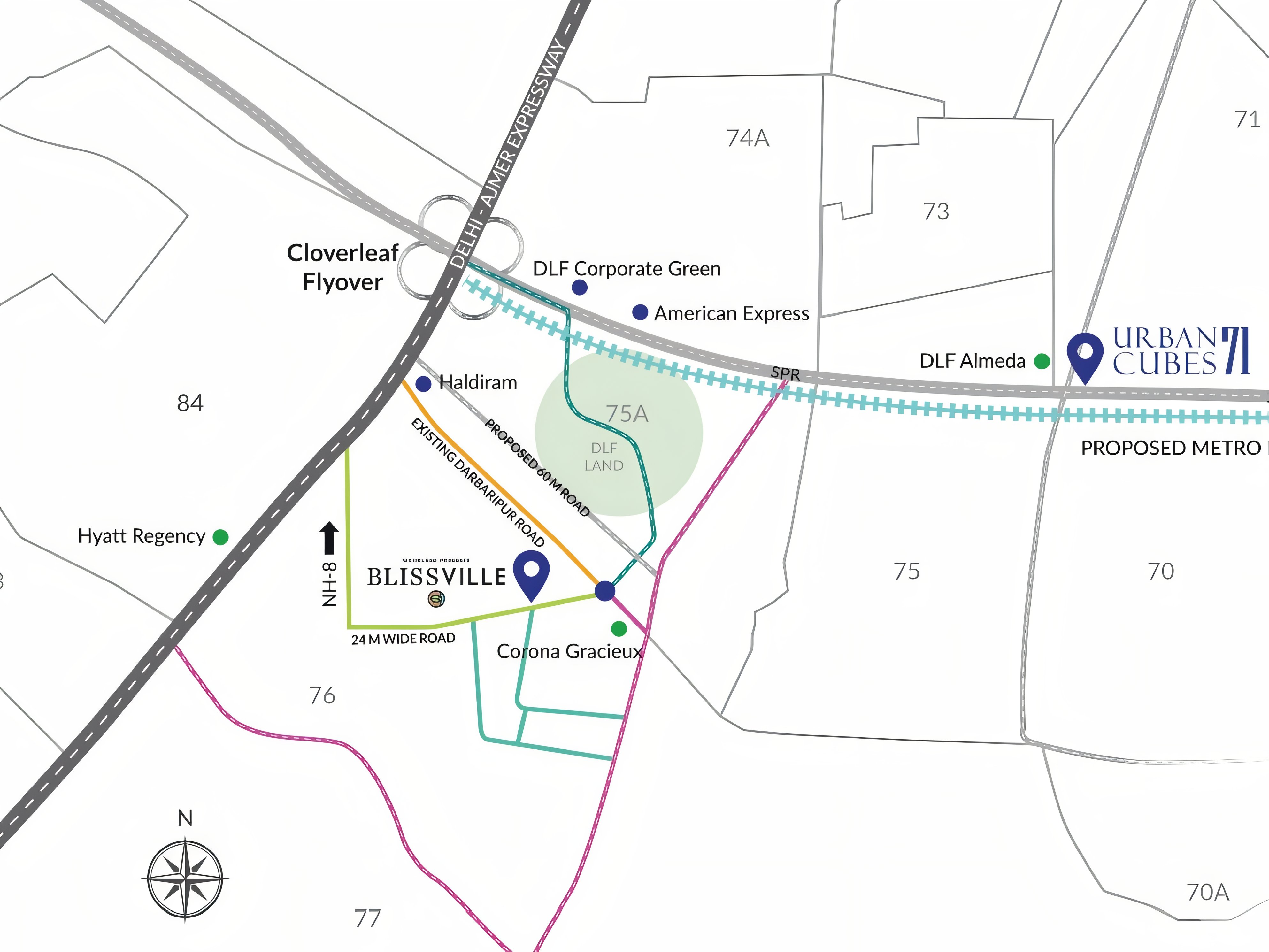 Situated on Southern Peripheral Road (SPR), the project enjoys seamless connectivity to NH-8, Dwarka Expressway, Sohna Road, Golf Course Extension Road, and IGI Airport. The area is surrounded by top-tier schools, hospitals, business hubs, and upcoming infrastructure, making it an ideal choice for both end-users and investors.